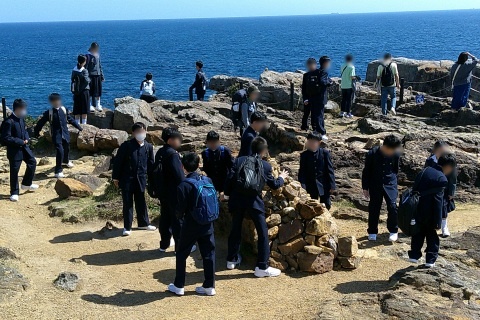 2日目は、フィールドワーク講座を受けた後、京大白浜水族館や三段壁洞窟などを見学などをしました。